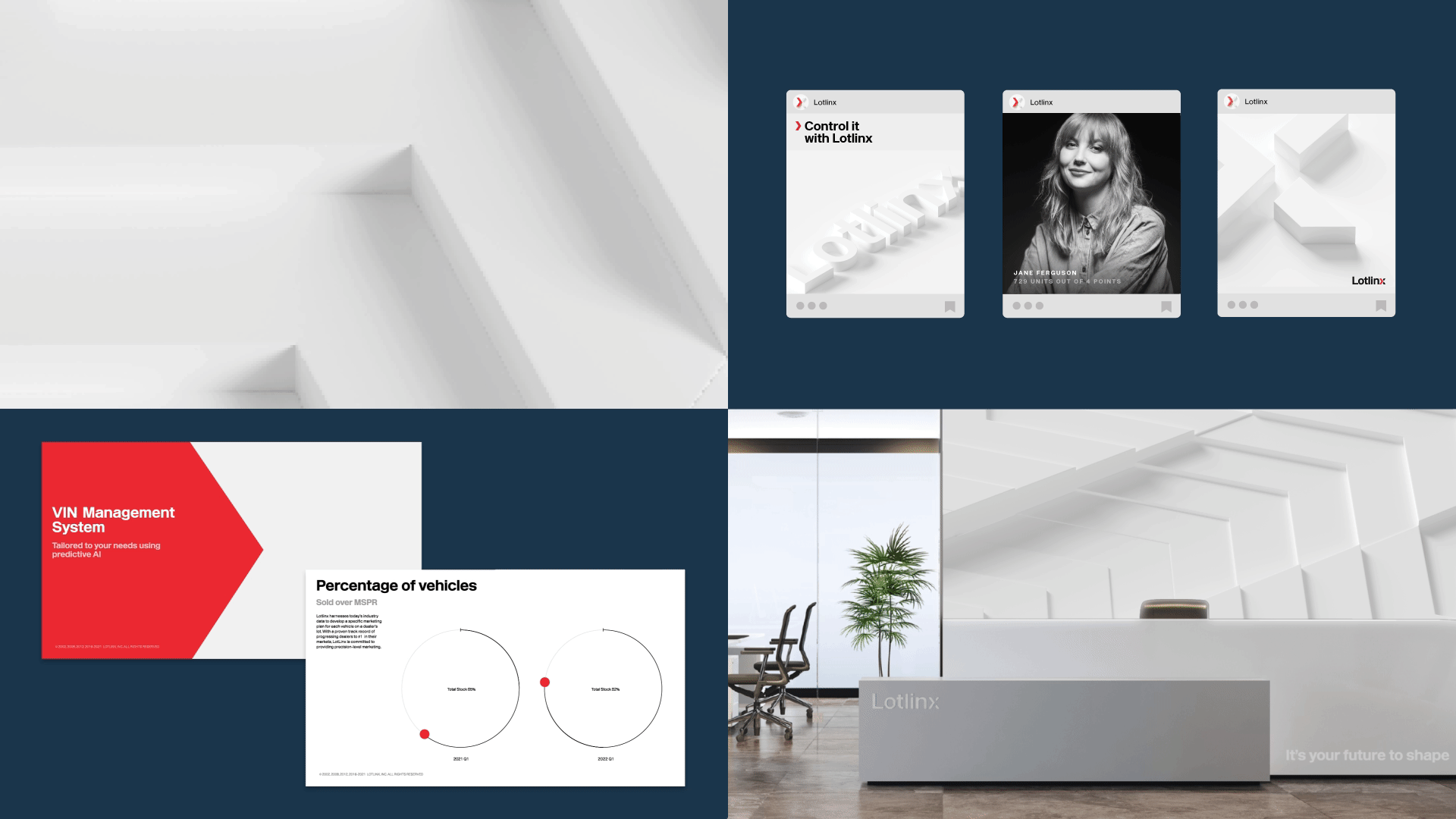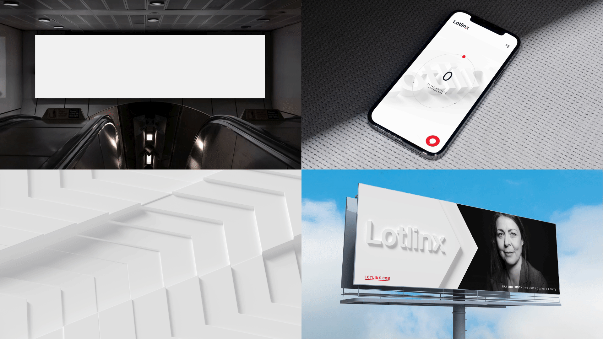 Lotlinx, a vehicle inventory management platform, sought to reposition its brand as a technology-driven leader focused on putting car dealers back in control. Interbrand engaged dealers across North America to build a strategy rooted in their real needs, establishing Lotlinx as a trusted partner in precision retailing. The brand centers on empowerment and control, expressed through a confident, candid voice and a visual system that places dealers at the heart of every touchpoint. A modern, fluid wordmark and a custom chevron within the ‘x’ signal forward momentum and adaptability. A restrained black-and-white palette with an accent red reinforces clarity, trust, and authenticity across the entire brand system.