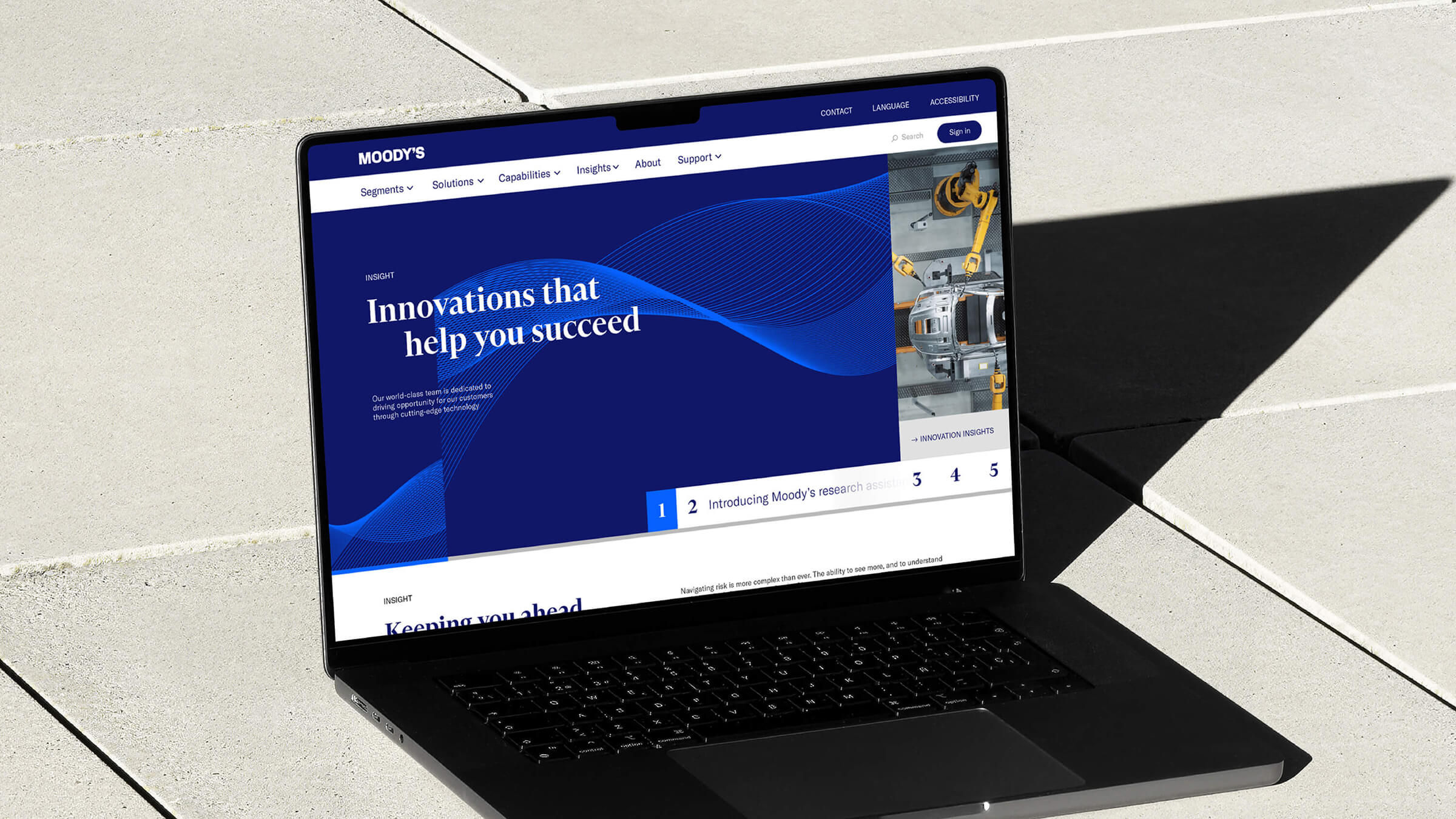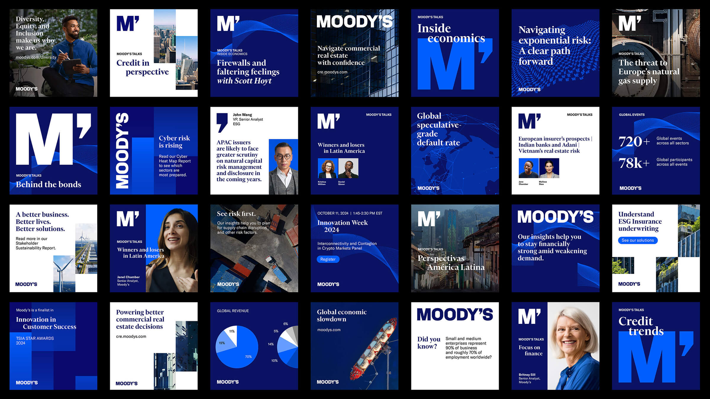 Moody’s, a trusted leader in financial risk assessment, sought to unify its evolving portfolio amid growing complexity. To reflect this shift, we crafted a cohesive identity around the brand purpose: “To uncover meaning amid uncertainty so that individuals and organizations can thrive.” Key updates included an organized messaging framework, a distinct tone of voice, and a modern design system. Highlights feature a refreshed logo inspired by Moody’s original ratings manuals, a unique apostrophe graphic, and a digitally optimized Moody’s Blue. The result is a more human, differentiated brand that confidently owns its category while honoring its 115-year legacy.