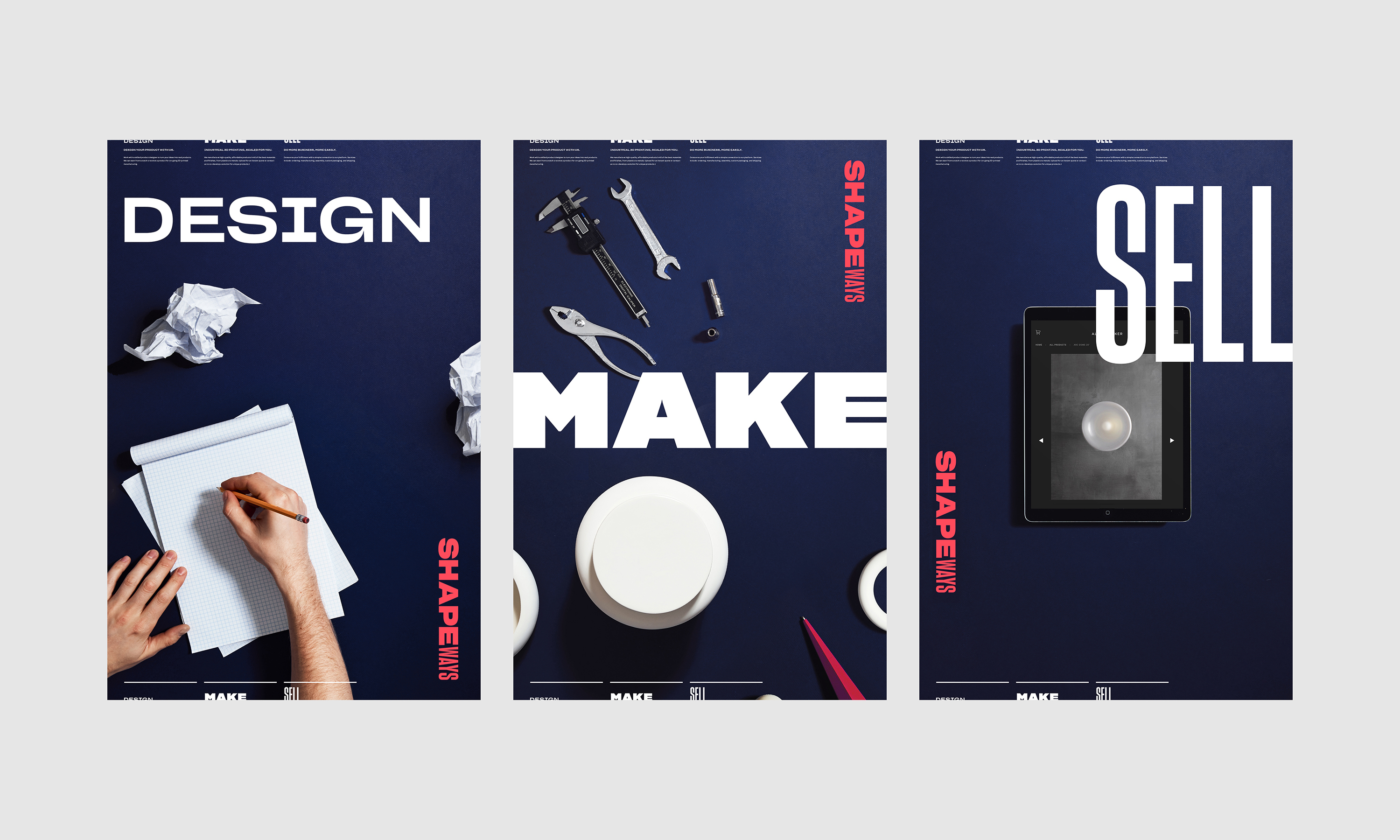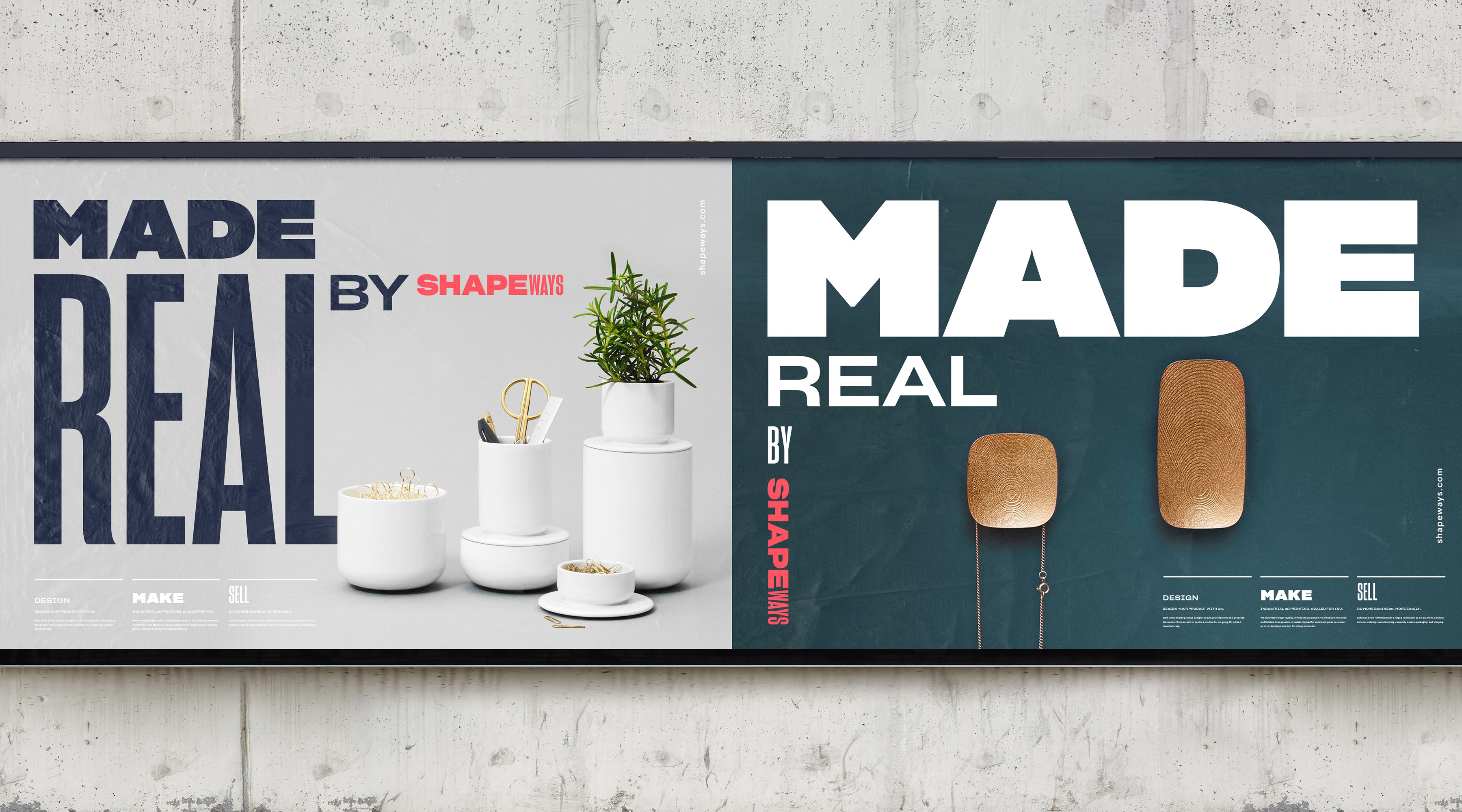 Logo and Brand Identity for Shapeways. Shapeways enables creators to bring product ideas to life through a unique platform of end-to-end service — from conception (design) to creation (make) to sales (sell). With design tools and services, access to advanced production technology (starting with 3D printing), and services to build a business Shapeways has set out to redefine product creation.